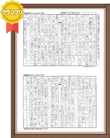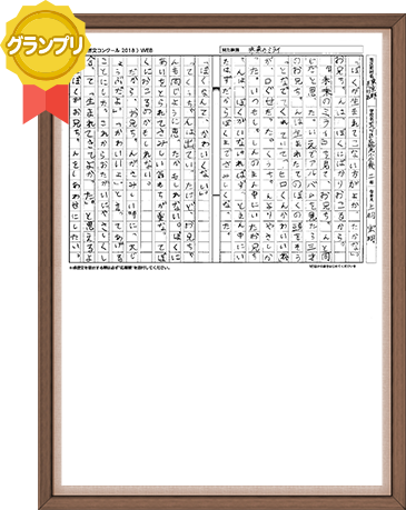 十年後の私は、お世話になったお医者さんやかんごしさんやリハビリの先生のように「ありがとう」と言われるようになっていますか。そして、自分でもすなおな心で「ありがとう」と言えるようになっているでしょうか。それから、人を思いやることもできるようになっているでしょうか。入院中は、色々な人が私を思いやってくれました。今度は私が人を思いやるようになりたいです。この手紙を読んでいる私が、そのためにがまん強くがんばれる私でいることをねがいます。