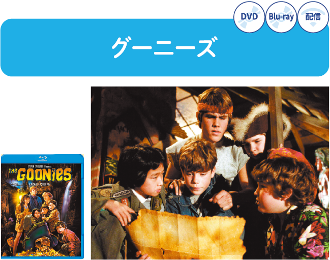 ある日、落ちこぼれ集団“グーニーズ”が、海賊ウィリーの隠したお宝の在りかを示した地図を発見する。少年たちが繰り広げるワクワクとドキドキの宝探しの冒険が始まる──。