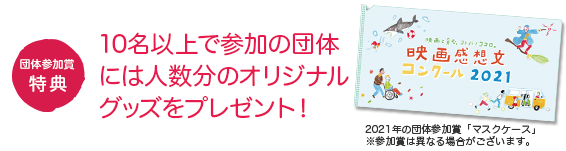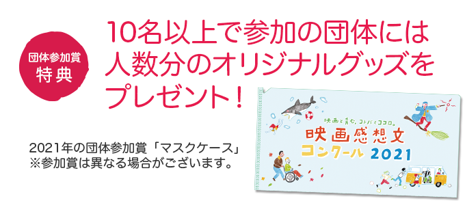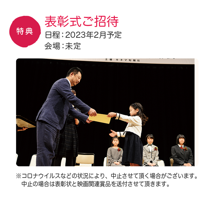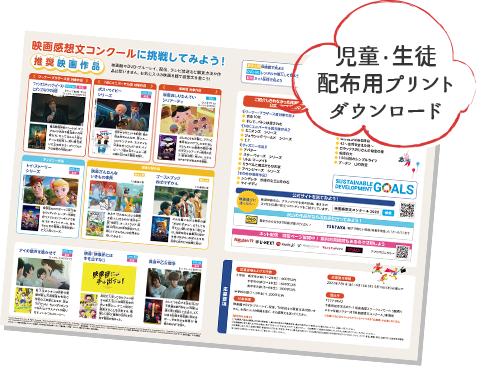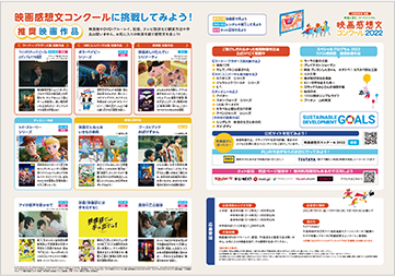- ④応募票に記入された感想文題名・映画名および氏名・学校名・学年と入賞作品を含むすべての応募作品は主催者の刊行物やwebサイトのほか、テレビ、ラジオ、雑誌、書籍、教材、店頭POP、出版物等各種媒体で使用・公表することがあります。ご了解のうえ、ご記入ください。