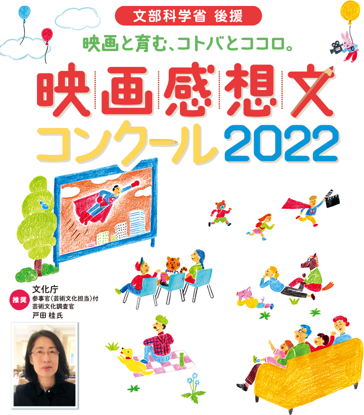「映画感想文コンクール」が「映画と育む、コトバとココロ。」をスローガンに今年も開催されます。2022年に見た映画でしたら、映画館、DVD・ブルーレイ、配信、TV放送など、どこで見ても、だれと見ても、どんな映画でもかまいません。映画を見て、感じたこと、思ったことをみんなに伝えましょう。