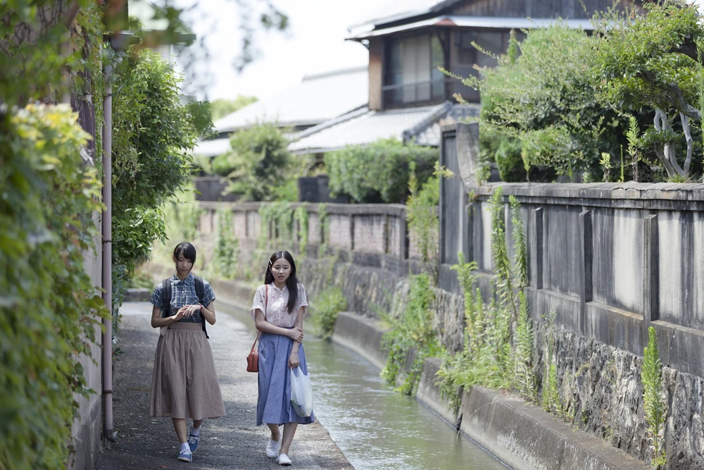 日常の魅力を撮る方法は2つあります。1つは、日常の中にある美しさに気づいて切り取る方法。将棋教室の彼女と主人公の子が川沿いの道を歩いてくるところ。よく「美観地区ですか?」と聞かれますが、地元の子らが「ミゾ」と呼んでいる、ニッケ住宅(加古川日本毛織社宅建築群)という古い街並みの裏手で、観光案内パンフレットには載ってない、スッと通り過ぎてしまいそうなところ。