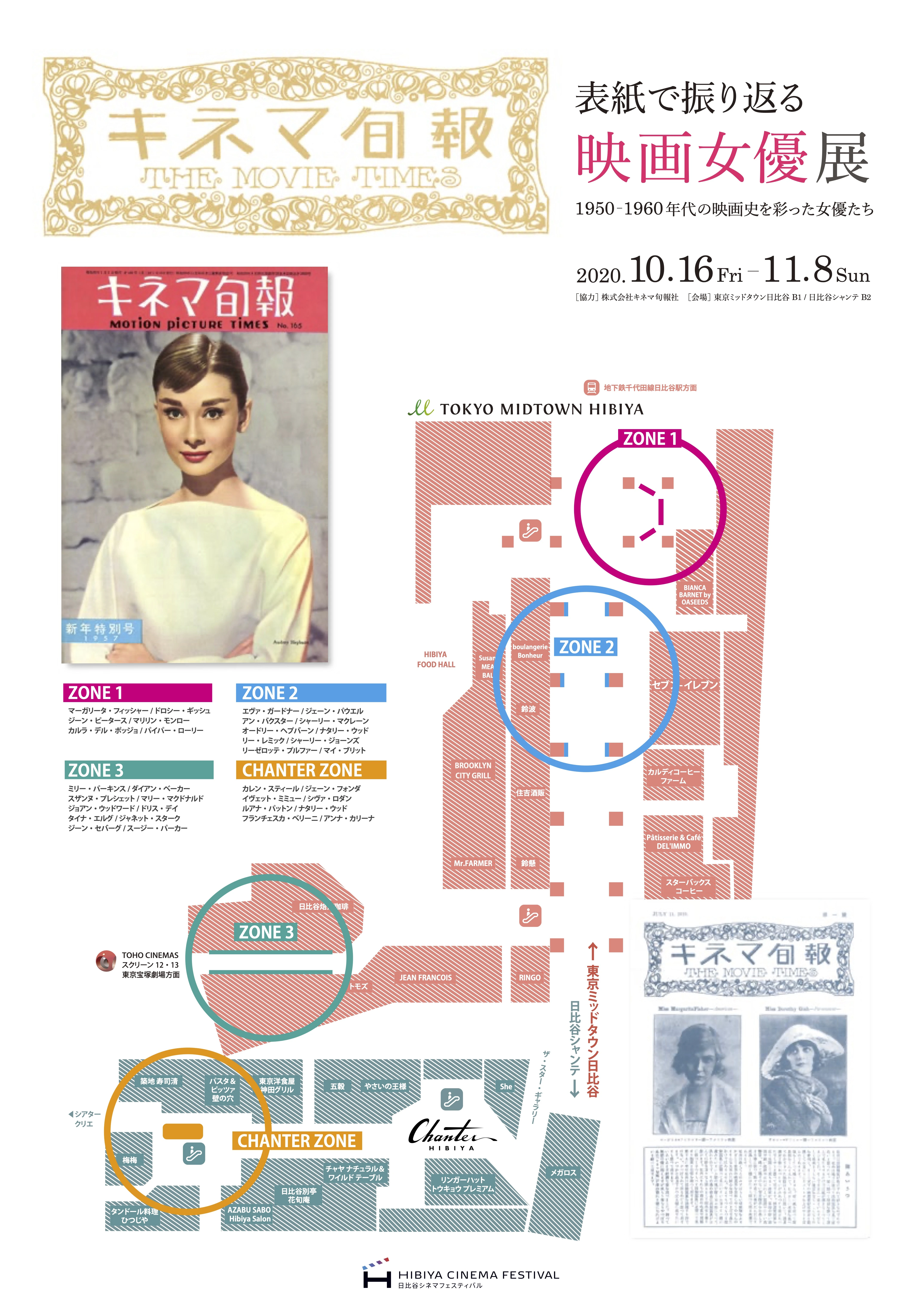 2020年10月16日(金)〜11月8日(日)に開催される「日比谷シネマフェスティバル2020」の会場となる日比谷ミッドタウン、日比谷シャンテ内に、1950〜1960年代を彩った映画女優たちの「キネマ旬報」表紙パネル、約30点が展示されます。開期中は、「トロント日本映画祭」や「東京国際映画祭」とも連携した多彩な上映プログラム等も同時開催されております。