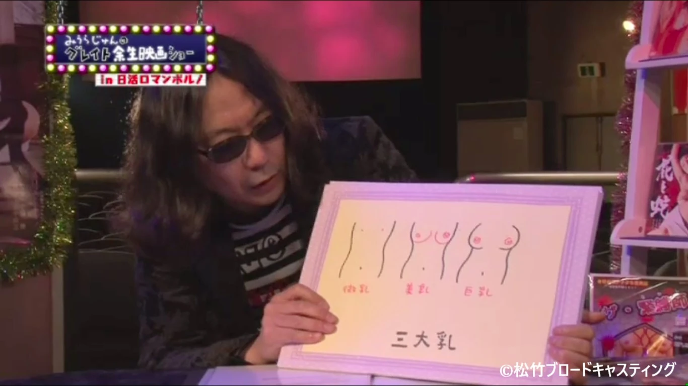 どうも、みうらじゅんと申します。今回の「グレイト余生映画ショー In 日活ロマンポルノ」第8回を迎えることになりました。今回のテーマは「軟乳」ということでございます。軟式と硬式があるように、オッパイにも軟乳と硬乳があるということでしょうか?