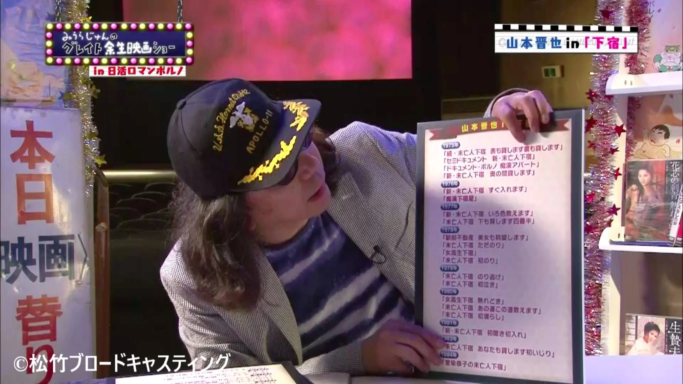 衛星劇場の協力の下、みうらじゅんがロマンポルノ作品を毎回テーマごとに紹介する番組「グレイト余生映画ショー in 日活ロマンポルノ」の過去の貴重なアーカイブから、公式書き起こしをお届けしたします。(隔週更新予定)