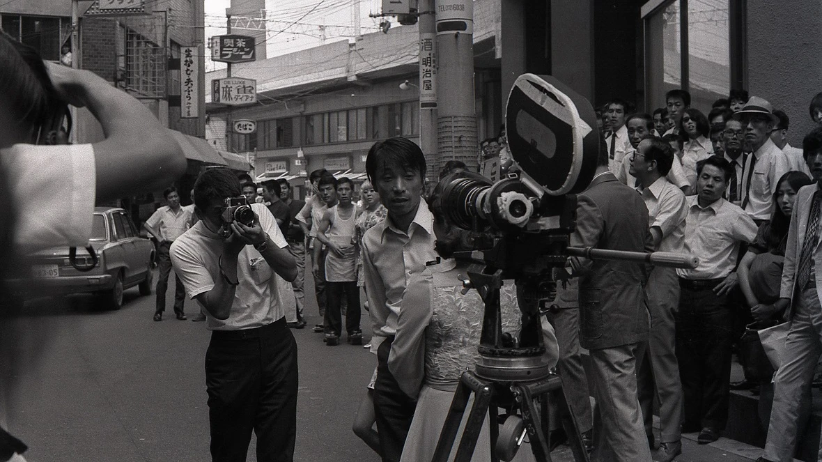 ▲『一条さゆり 濡れた欲情』の撮影中 神代辰巳監督(中央)