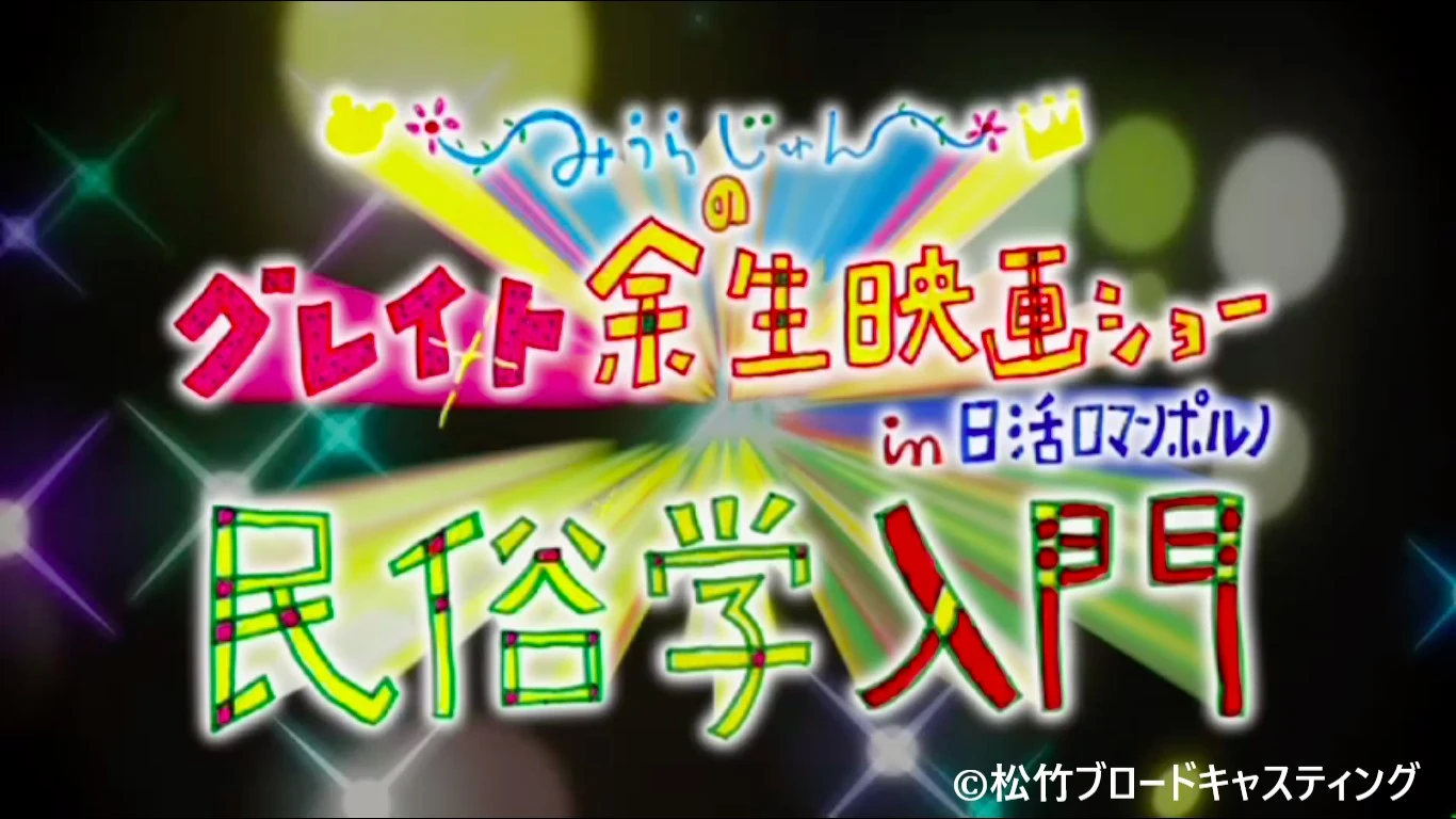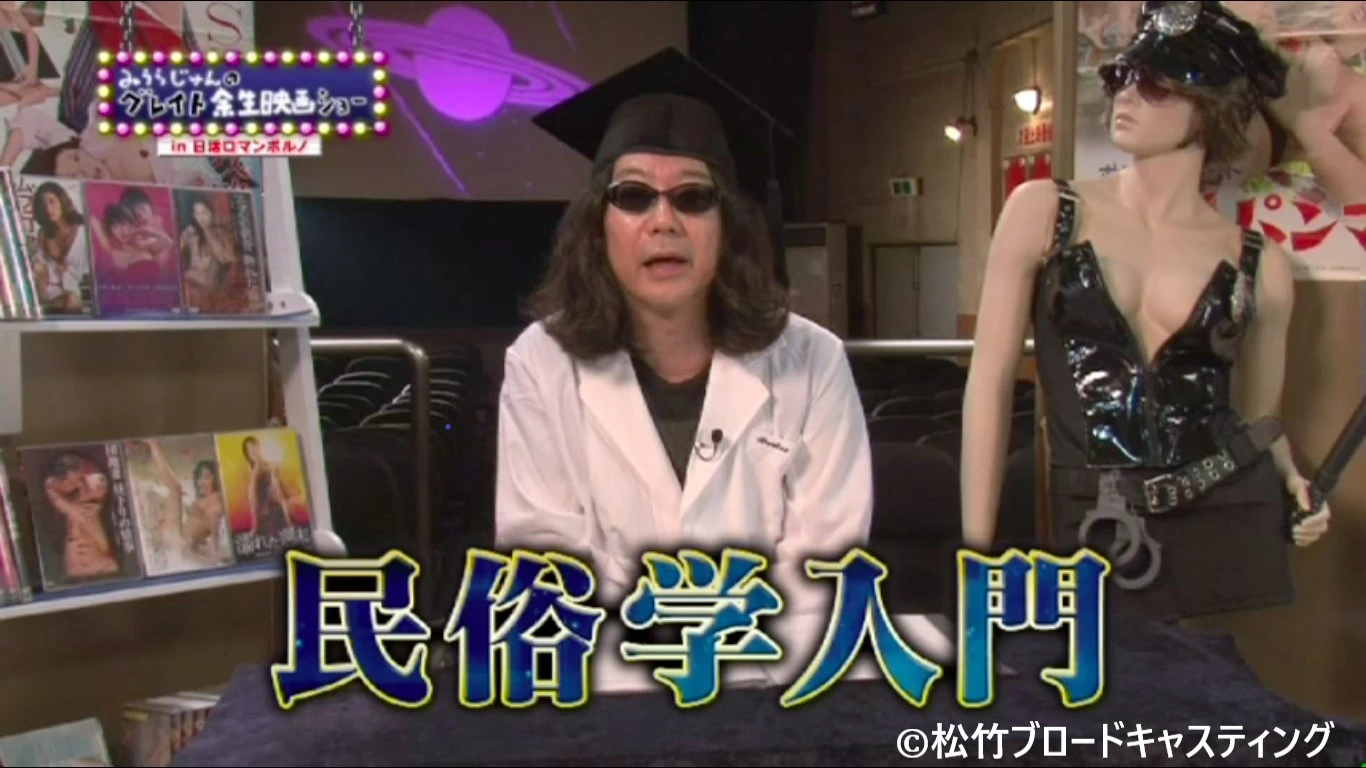どうも、みうらじゅんと申します。「みうらじゅんのグレイト余生映画ショー in 日活ロマンポルノ」の時間です。 リニューアルって事で、変わったのは、僕の格好だけなんですけども。これで私服じゃなくて、あくまでも借りものですからね。タイトルも一新しました。と言っても、「みうらじゅんのグレイト余生映画ショー in日活ロマンポルノ -民俗学入門-」。