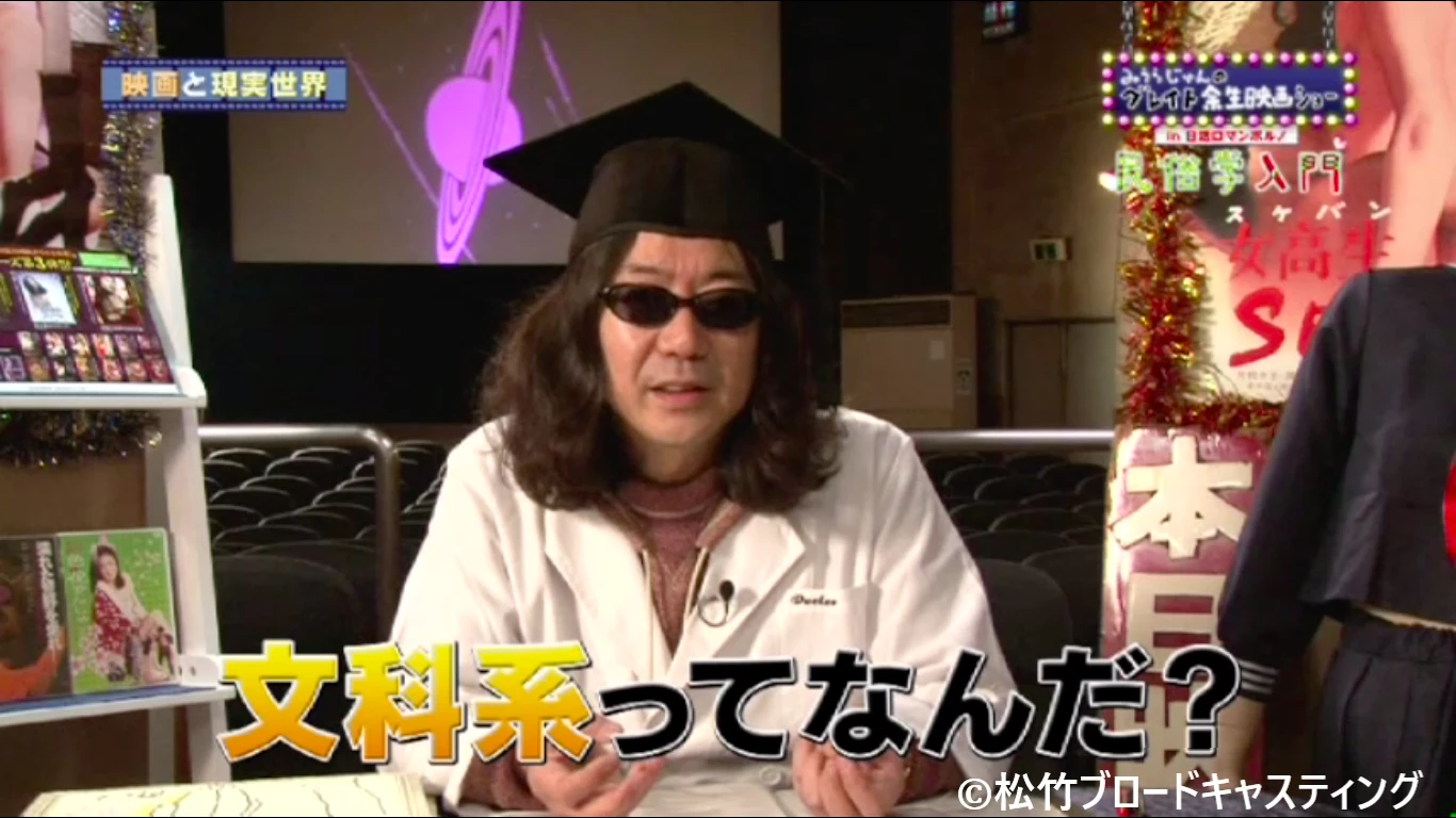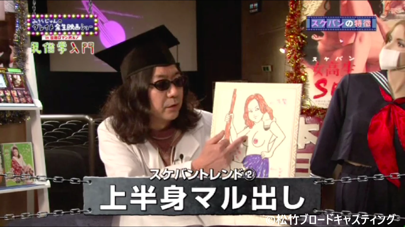 どうも、みうらじゅんと申します。「グレイト余生映画ショー in 日活ロマンポルノ -民俗学入門-」。今回のテーマは「女子高生(スケバン)」。女子高生の中でも、番を張られてた方の特集です。