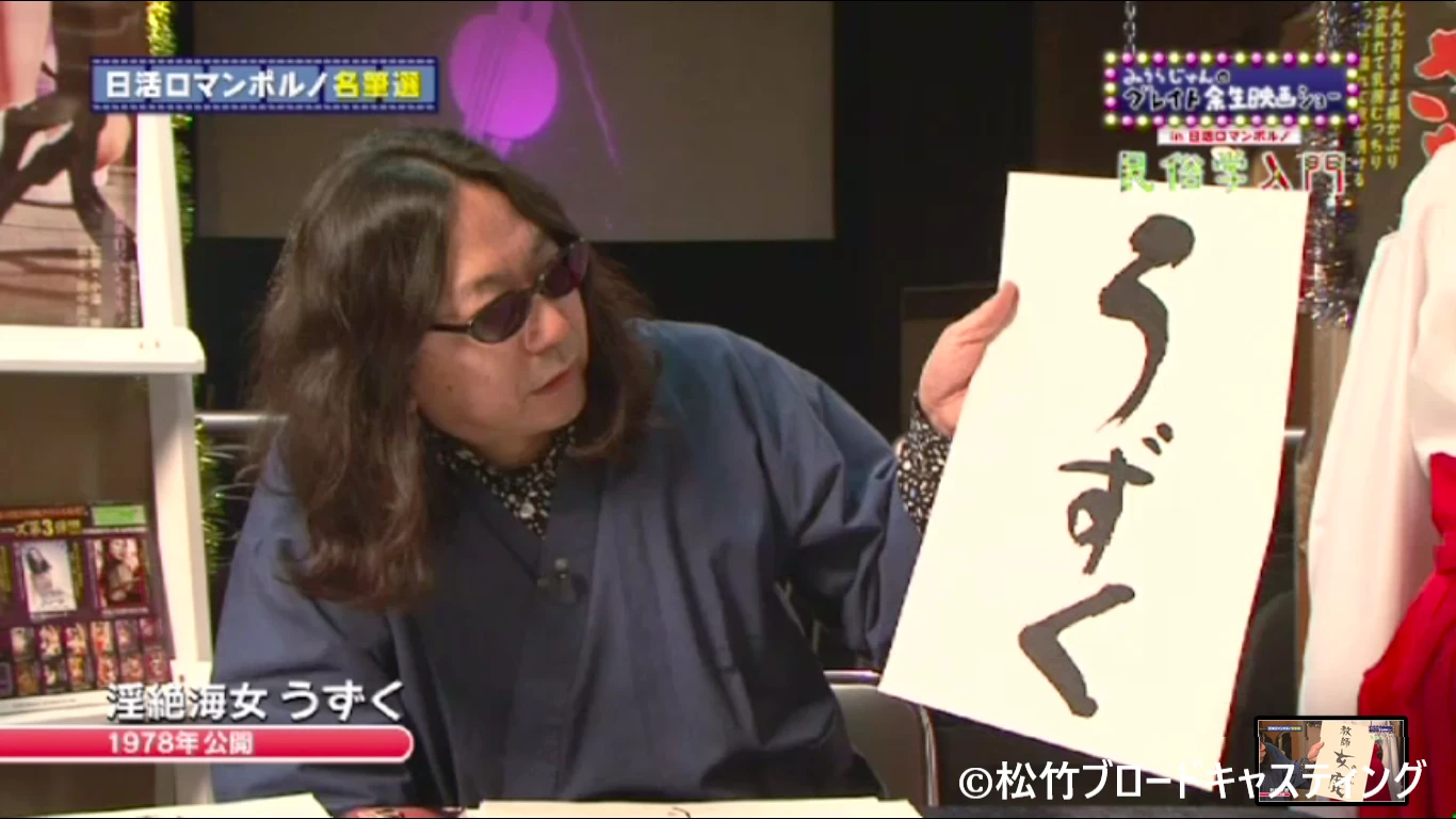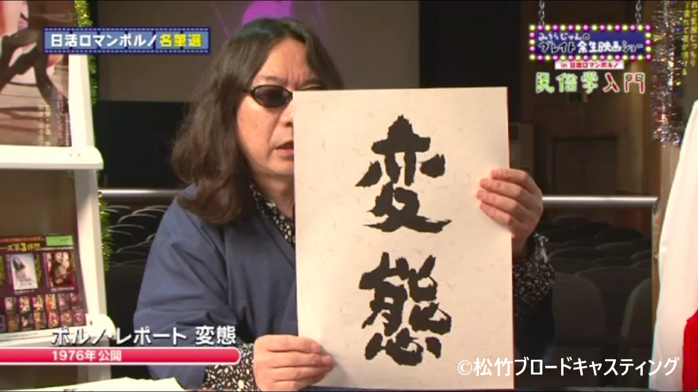 どうも、みうらじゅんと申します。「グレイト余生映画ショー In 日活ロマンポルノ 民俗学入門」。今回はですね、「日活ロマンポルノのポスターにおける[書]」というテーマです。エロ書道について、皆さんと学んでいきたいと思います。