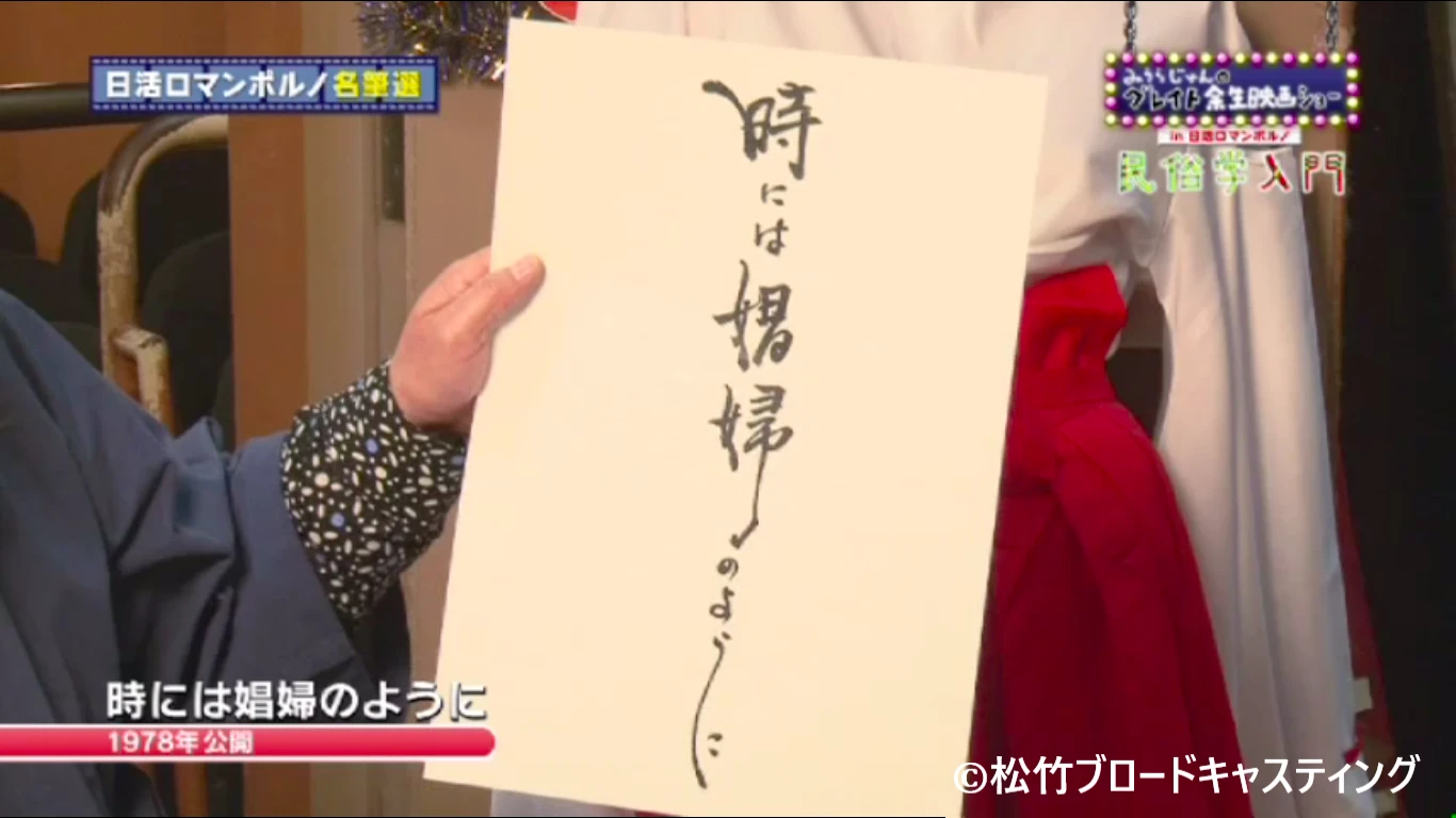 衛星劇場の協力の下、みうらじゅんがロマンポルノ作品を毎回テーマごとに紹介する番組「グレイト余生映画ショー in 日活ロマンポルノ」の過去の貴重なアーカイブから、公式書き起こしをお届けしたします。(隔週更新予定)