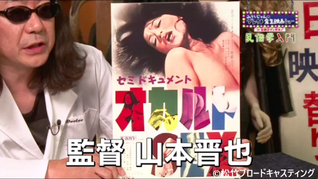 今回、紹介する作品は『セミドキュメント オカルトSEX』、いったいどんな作品なのでしょう。1974年製作ということで、ピンと来た方も多かったと思います。当然、あの方のことでしょうね。この頃に、ウィリアム・フリードキン監督の『エクソシスト』(1973年製作 第46回アカデミー賞の脚色賞と音響賞を受賞)が公開されて、世界的にオカルトブームが来ました。その時に撮られた作品が本作ですね。監督は当然、山本晋也監督(笑)!当然ですよね!脚本も山本晋也監督!当然ですよね!