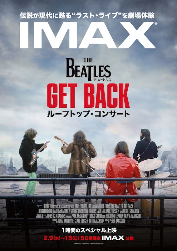 この“ルーフトップ・コンサート”は、ディズニープラスで独占配信中のドキュメンタリー作品「ザ・ビートルズ:Get Back」に収録されており、このたび独自のIMAX DMR®(Digital Remastering)技術によって The IMAX Experience®の画質と音質にデジタルリマスターされ、 IMAX®スクリーン用に最適化された。上映に際し、ピーター・ジャクソン監督は「『ザ・ビートルズ:Get Back』のルーフトップ・コンサートを、IMAXの巨大スクリーンで体験できることに興奮しています。これはビートルズ最後のコンサートを鑑賞するうえで、この上ないほど完璧な方法です」とコメントしている。