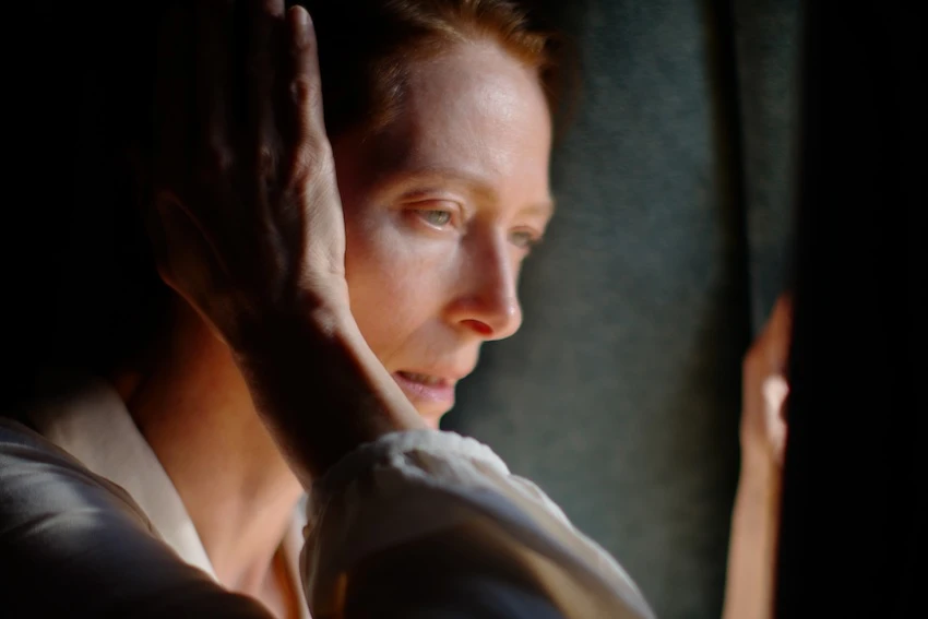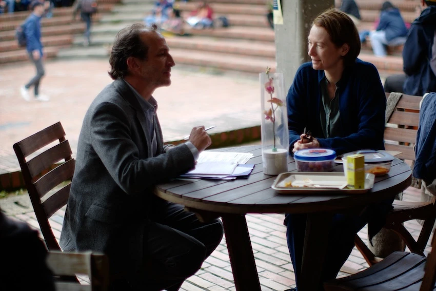 このたび新場面写真が到着。主人公ジェシカ(ティルダ・スウィントン)が音響技師エルナン(フアン・パブロ・ウレゴ)の側でヘッドフォンに聞き入るシーン、自分にしか聞こえない【音】を聞いているかのようなシーン、義弟のフアン(ダニエル・ヒメネス・カチョ)とボゴタのカフェで談笑するシーン、山間部の町ピハオの川沿いでたたずむシーンが解禁。いずれも日常の場面ながら、静かな緊張に満ちている。