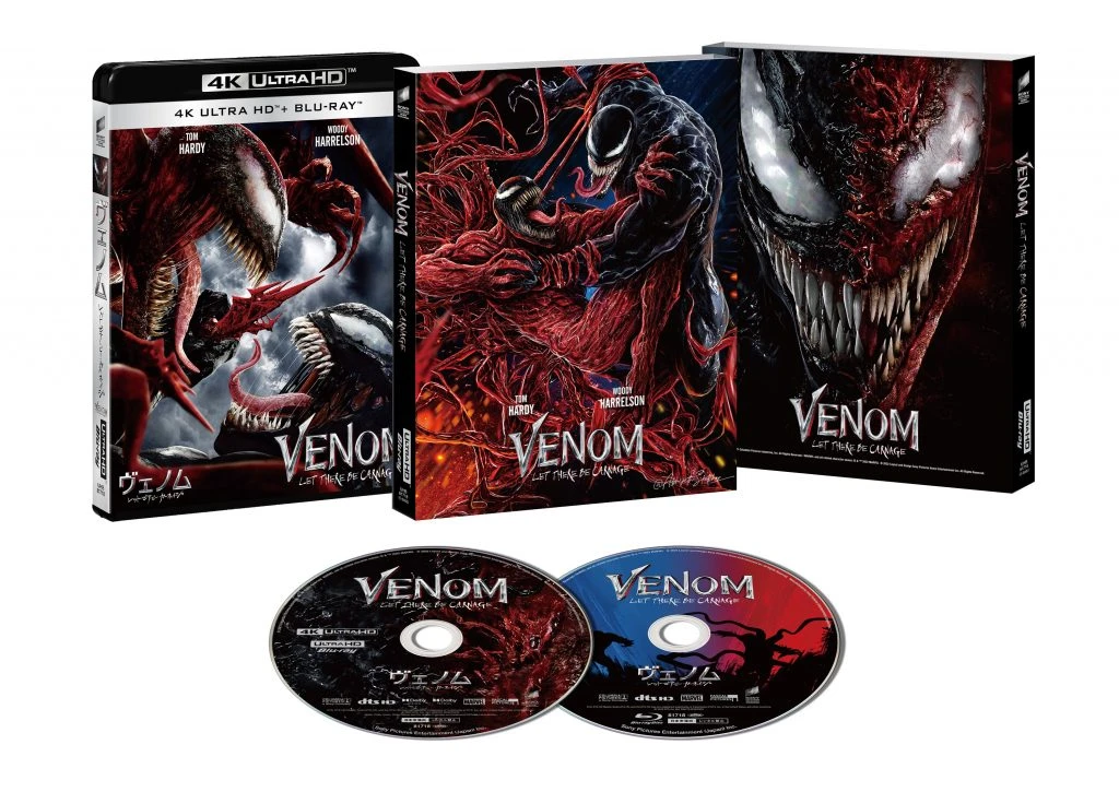★特典:ヴェノム&カーネイジ両面スリーブケース仕様(数量限定)、アクション・シーンができるまで、未公開シーン(6種)、プレビズ(3種)、NGシーン、エディとヴェノム:おかしな二人、イースター・エッグ紹介、クレタス・キャサディについて、真実の愛:クレタスとシュリーク、カーネイジのつくり方(計約60分)