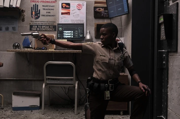 砂漠の警察署にある夜、暴力沙汰を起こした詐欺師テディが連行される。マフィアのボスに命を狙われ、避難場所を求めてわざと逮捕されたのだ。しかしマフィアに雇われたスゴ腕の殺し屋ボブが泥酔男に成りすまして留置所のお向かいさんとなったから、さぁ大変。新人警官ヴァレリーの活躍によってボブのテディ抹殺計画は阻止されるが、マフィアが放った新たな刺客、サイコパスのアンソニーが現れて署員を皆殺しにし、小さな警察署は戦場のような大惨事に……。孤立無援のヴァレリーと裏社会の男3人、殺し合いを生き抜いて朝を迎えるのは誰だ!?
