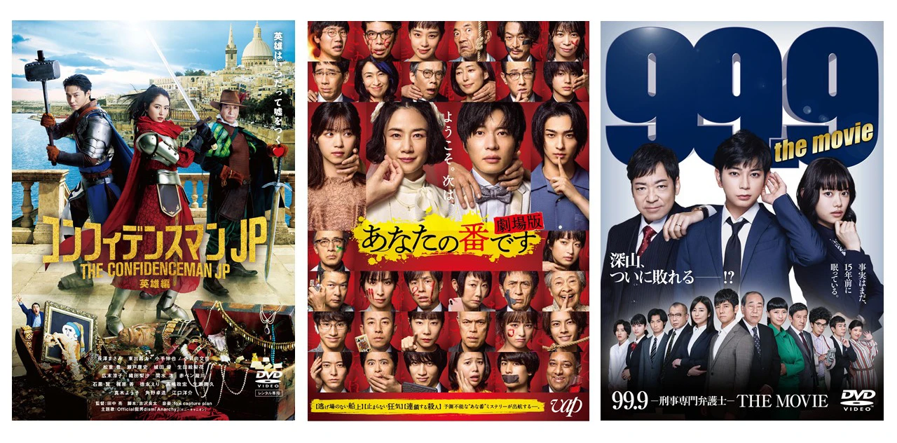 昨年末から今年の頭に劇場公開されて大ヒットしたTVドラマの劇場版、「コンフィデンスマンJP 英雄編」「あなたの番です 劇場版」「99.9-刑事専門弁護士-THE MOVIE」の3作が、続けてソフト化。近年のTVドラマの劇場版の代表作ともいえるこれらのリリースにあわせ、TVドラマの劇場版の歴史や傾向を簡単に振り返りつつ、3作を紹介していこう。