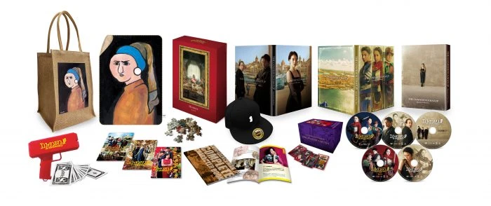 また、数量限定の超豪華版も用意されており、こちらは7月6日に発売。本編のブルーレイとDVD、豪華版と同じ特典DVDに加え、長澤&東出&小日向&小手&田中監督によるビジュアルコメンタリーなどが収録された3枚目の特典DVDも追加。表情や仕草と共に、映像ならではの補足もありつつ、コメンタリーを楽しむことができる。さらに、封入アイテムとして、劇中でもお馴染みのマネーガンや、ダー子が描いた「(C)ダー子」のフェルメールのキャップやブランケット、シリーズキャラクターを網羅した写真名鑑など盛りだくさんで、ファン垂涎のコレクターズアイテムとなっている。