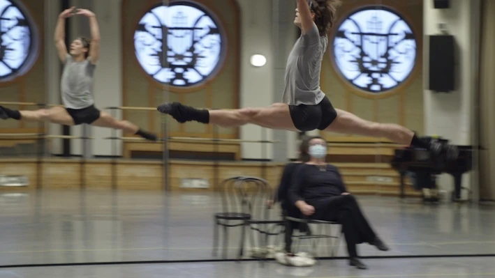 予告編は、マチュー・ガニオ、アマンディーヌ・アルビッソン、ジェルマン・ルーヴェといった最高位のエトワールが、“オペラ座の宝”といわれる演目、ヌレエフ振付の超大作「ラ・バヤデール」の年末公演に向けて稽古を重ねていく姿を映し出す。オペラ座の再閉鎖を受けたユーゴ・マルシャンの「気が変になりそうだ。バレエ団との契約は42歳で終わる。僕らの体の生物学的な時間との闘いだ」という言葉からは、ダンサーの過酷なありようが伝わってくる。