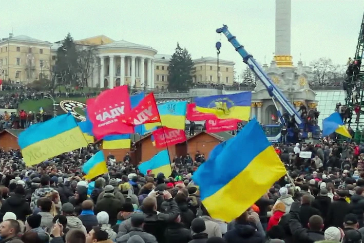 ウクライナで起きた市民運動。2013年11月の首都キーウ独立広場でのデモ活動に始まり、2014年2月のマイダン革命(親ロシア派ヤヌコーヴィチ大統領の失脚)へ至った。