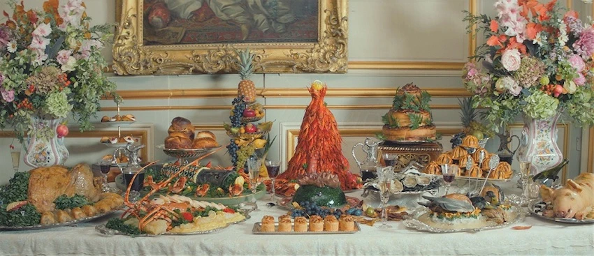 場面写真はマンスロンとルイーズが厨房で小麦粉を捏ねるシーンや、豪華絢爛な料理などを捉えたもの。貴族と庶民が食を共にするなど考えられなかった時代に“食の革命”、世界初のレストランの開業はいかにして成し遂げられたのか? 爽快な実話ドラマに期待したい。