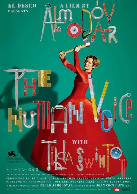 ティルダ・スウィントンを主演に迎え、ジャン・コクトーの戯曲『人間の声』をペドロ・アルモドバル監督が翻案して映画化した短編「ヒューマン・ボイス」が、11月3日(木・祝)よりヒューマントラストシネマ有楽町、Bunkamura ル・シネマ、新宿シネマカリテほかで公開される(同じアルモドバル監督作「パラレル・マザーズ」と同日公開)。ポスタービジュアル、予告編、場面写真が到着した。