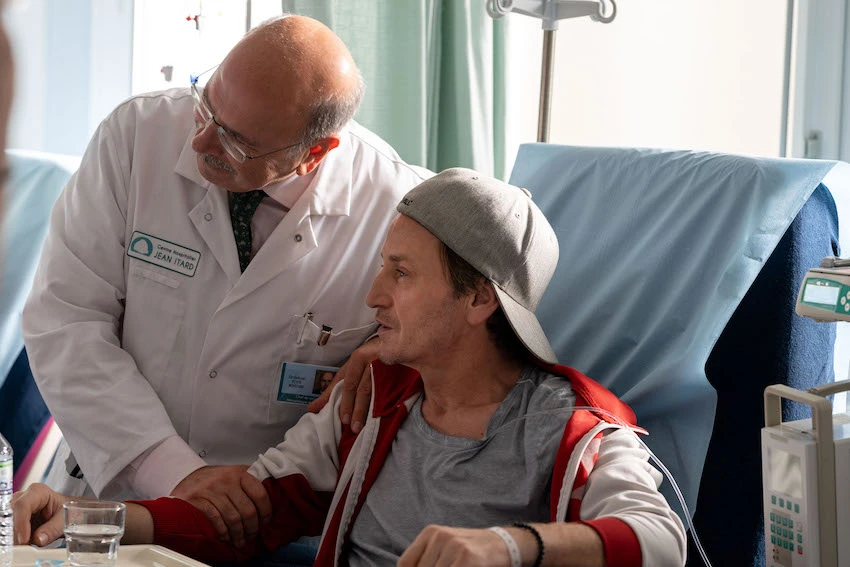 場面写真は、膵臓癌を宣告されたバンジャマン(ブノワ・マジメル)と付き添う主治医のドクター・エデ(ガブリエル・サラ)、スマホを手にバンジャマンの身を案じる母クリスタル(カトリーヌ・ドヌーヴ)、患者を見つめる看護師(セシル・ド・フランス)などを捉えたもの。