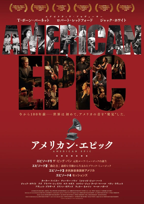 アメリカのポピュラー・ミュージックのルーツを紐解きながら、カントリー、フォーク、ブルーズ、R&B、ネイティブ・アメリカン、ハワイアン、ラテンといったジャンルへ発展していく大きなうねりを全4部・5時間以上で描き出すドキュメンタリー「アメリカン・エピック」が、11月18日(金)〜12月1日(木)にYEBISU GARDEN CINEMAで上映され、全国でも順次公開される。メインビジュアルと予告編が到着した。