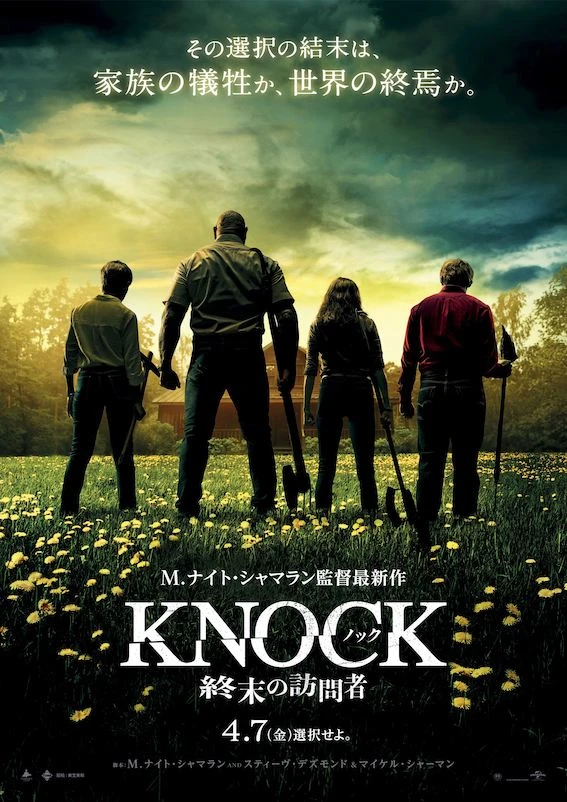 異才M.ナイト・シャマランが “究極の選択” をテーマに描く終末スリラー「ノック 終末の訪問者」が、4月7日(金)より全国公開。予告映像とポスタービジュアルが解禁された。