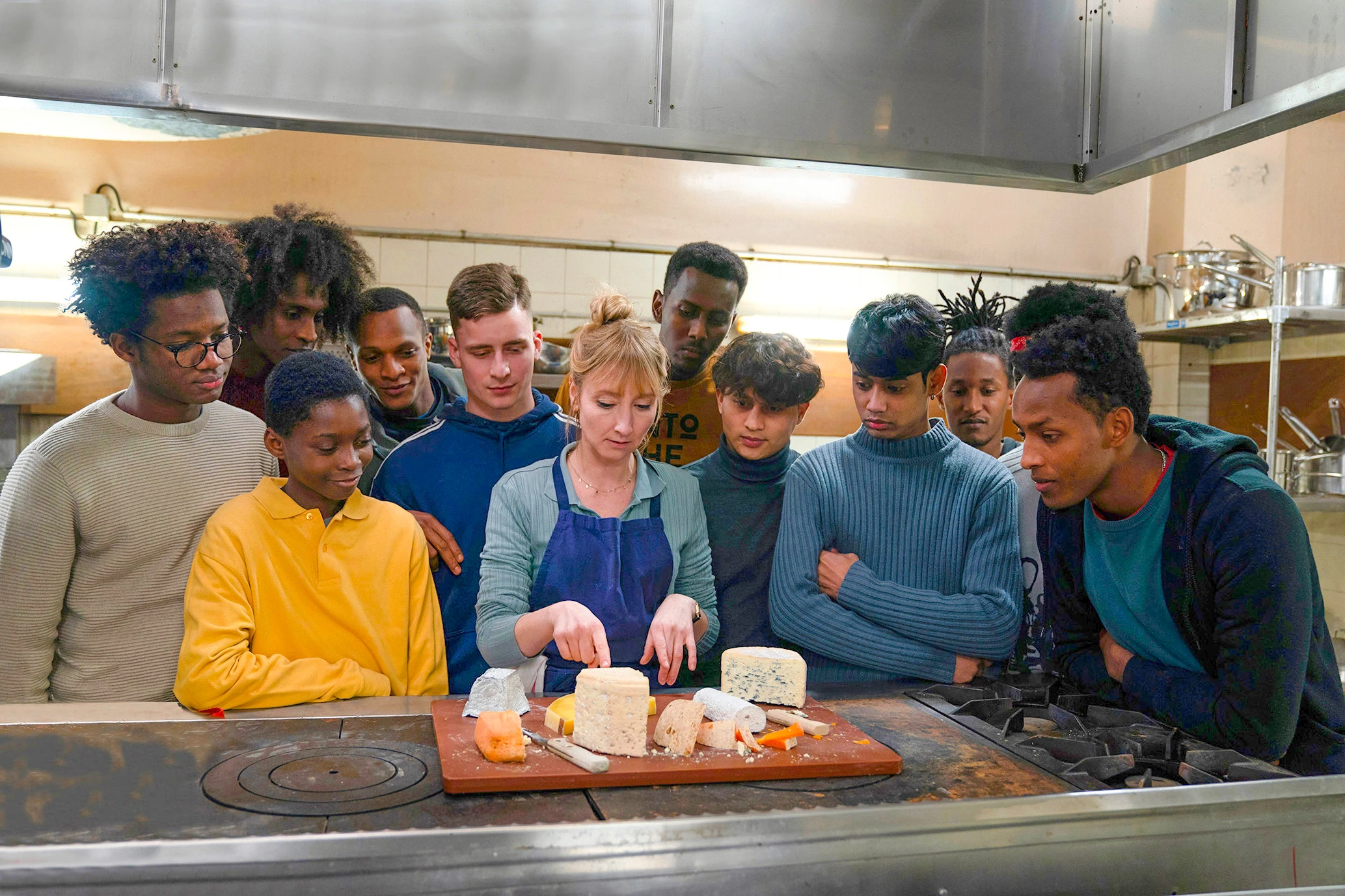 ミシュランの一つ星レストランのシェフから数カ月にわたって指導を受けたというカティ役のオドレイ・ラミー、カティと共に全身全霊で少年たちを支援する施設長ロレンゾに扮したフランソワ・クリュゼが出演。二人のベテラン俳優が対峙するのは、実際にパリの移民支援施設で暮らす若者たちだ。演技初体験ゆえのまっさらな言葉運びや態度がそのままスクリーンに映し出され、彼らが今まさに直面している現実をよりリアルに感じることができる。