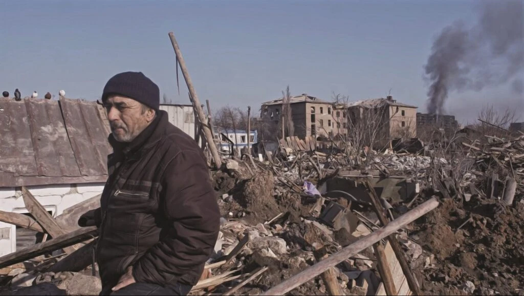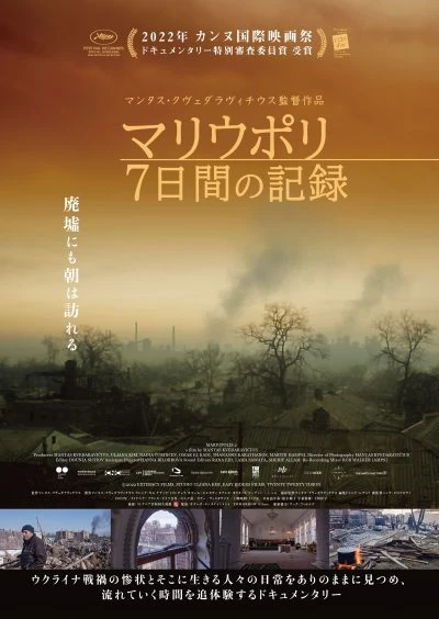 2022年2月24日、ロシアのウクライナ侵攻によって、廃墟と化した東部ドンバス地方のマリウポリ。その戦禍の惨状で生きる人々の7日間を、私情や感傷を交えずに記録し、リアルに追体験させるドキュメンタリー。監督はリトアニア出身で、人類学者からドキュメンタリー監督に転身したマンタス・クヴェダラヴィチウス。2016年にマリウポリの人々の日々の営みを記録した「Mariupolis」(日本未公開)を発表した監督は3月に現地入りし、破壊を免れた教会に避難していた数十人の市民と生活を共にしながら撮影を開始した。カメラに収められたのは、死と隣り合わせの悲惨な状況下でも、普通におしゃべりを交わし、助け合い、祈り、料理をし、タバコを吹かし、また次の朝を待つ住民たちの姿だった。だが3月30日、監督は同地の親ロシア分離派に拘束され、殺害されてしまう。助監督だった監督のフィアンセによって撮影済みの素材は遺体とともに帰国し、製作チームが本作を完成させた。2022年5月、第75回カンヌ国際映画祭で特別上映され、ドキュメンタリー審査員特別賞受賞。