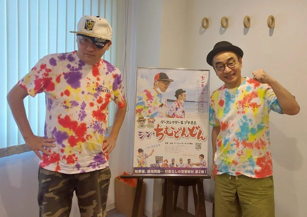 人気YouTube番組『ヒルカラナンデス(仮)』の名タッグ、ラッパーのダースレイダーと時事芸人のプチ鹿島は今年、ドキュメンタリー映画界においてもフルスロットル状態だ。約半年前、出演と監督を務め、2月に封切られるやスマッシュヒットを飛ばした「劇場版 センキョナンデス」に続いて、早くも第2弾の「シン・ちむどんどん」を作り上げたのである(8月11日より那覇・桜坂劇場にて先行公開、あわせて全世界同時配信もスタート。8月19日からは東京・ポレポレ東中野、シネマ・チュプキ・タバタほか全国順次公開)。