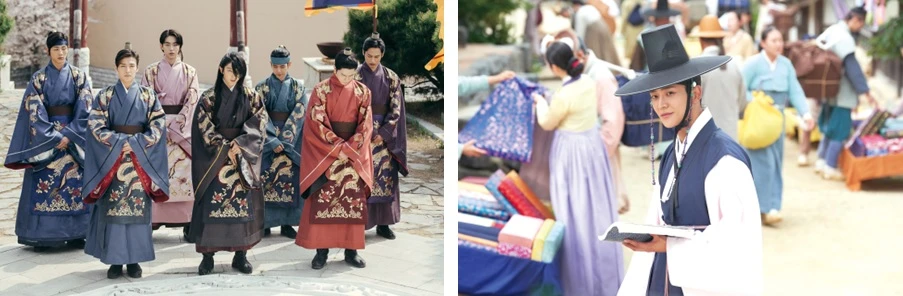 若手をメインキャストに迎えた、『トキメキ☆成均館スキャンダル』(10)の成功は、時代劇に学園もの、いい男軍団の活躍などを取り込むことになった。その結果、時代劇がアイドルや若手俳優の演技挑戦の場としても開かれていく。高麗王の麗しい息子役にベクヒョン(EXO)やナム・ジュヒョクらを抜擢した『麗<レイ>〜花萌ゆる8人の皇子たち〜』(16)、新羅時代の美男部隊をBTSのV、SHINeeのミンホらが演じた『花郎(ファラン)』(16)は、アイドルファンら若いドラマファンの獲得に成功している。その『花郎(ファラン)』に続き『青春ウォルダム〜運命を乗り越えて〜』(23)でも、圧倒的に麗しい王族役で魅せているパク・ヒョンシクや、『恋慕』のロウン(SF9)も含め、眼福演技ドルの活躍は今後も続きそうだ。