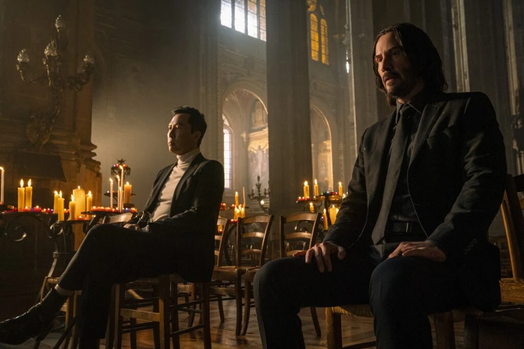 そして映画ファンの心を打ち、瞳を潤ませるのは、ジョンとケインの二人が対決を前に教会で語りあう場面だ。ジョン・ウー監督『狼/男たちの挽歌・最終章』(89年)へのオマージュでもあるが、ともにアクション映画のアップデートを模索し続けた二人がしみじみ過去を振り返り、「呪われてるんだ、俺もお前も」と漏らす。キアヌ・リーブス59歳、ドニー・イェン60歳、同世代にして盟友の二人の、長いキャリアとアクション映画への愛憎を重ね合わせた感動的なシーンだ。