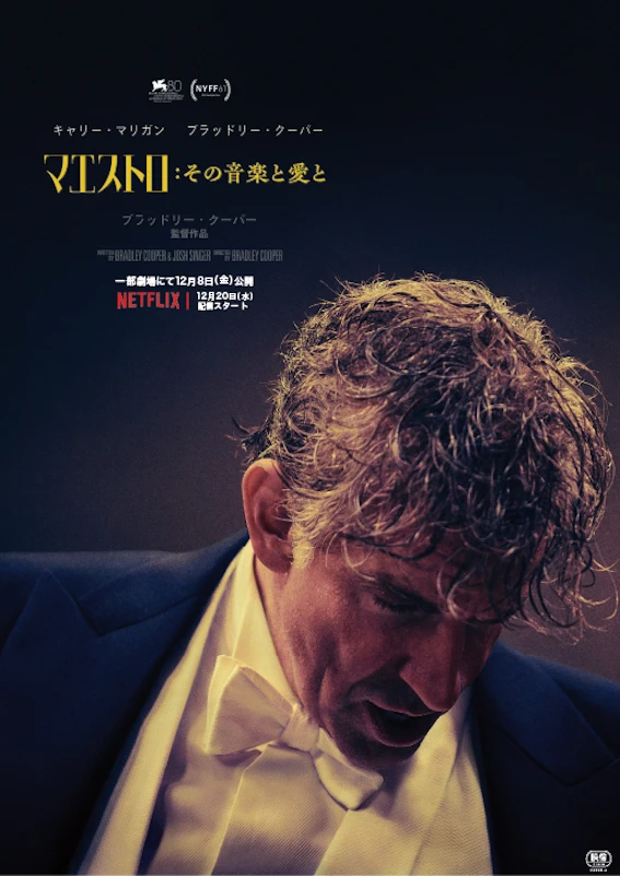 ブラッドリー・クーパーが監督・脚本・主演を担い、キャリー・マリガンが共演、さらにマーティン・スコセッシとスティーヴン・スピルバーグがプロデュース。『ウエスト・サイド物語』の音楽を手掛けたことなどで知られる世界的な指揮者・作曲家のレナード・バーンスタインと、女優・ピアニストとして活躍した妻のフェリシア・モンテアレグレ・コーン・バーンスタインが共に歩んだ生涯を描くNetflix映画「マエストロ:その音楽と愛と」が、12月20日(水)からのNetflix独占配信に先駆けて12月8日(金)より一部劇場で公開される。