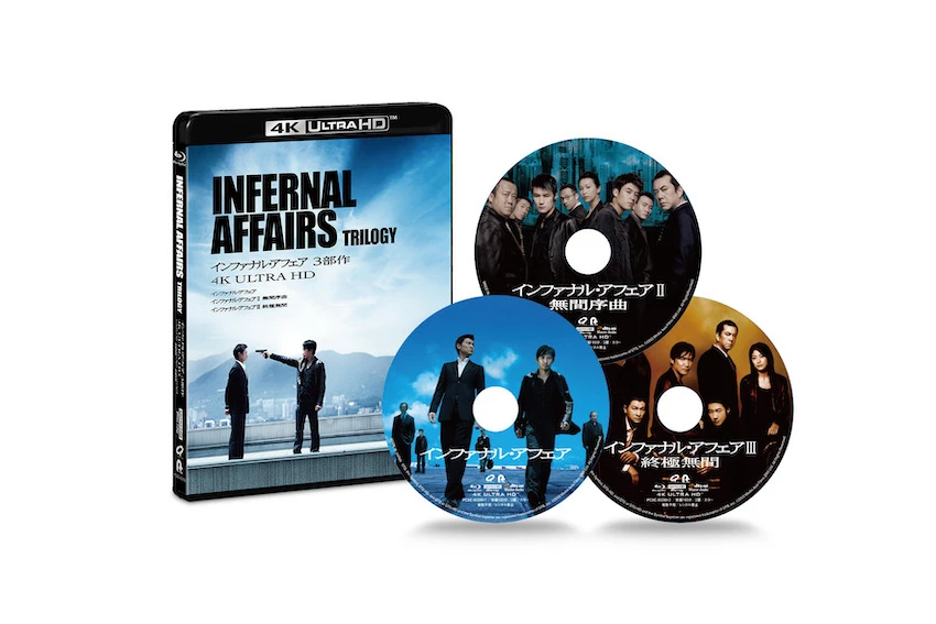 日本公開20周年となる2023年に、4Kレストア版でリバイバル公開された香港ノワールの金字塔「インファナル・アフェア」3部作。その4K ULTRA HD Blu-ray、4K レストア Blu-rayが3月20日にリリースされる。