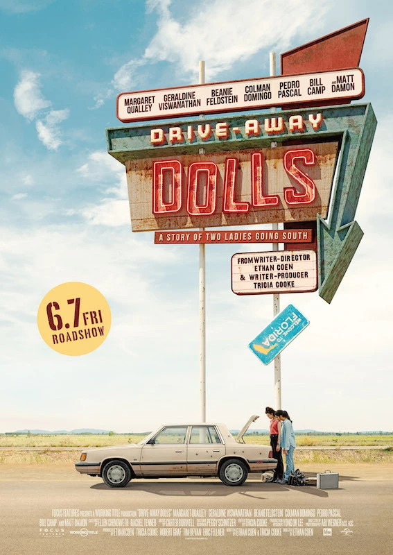 コーエン兄弟の弟であるイーサン・コーエンが単独監督を務め、二人の女性がアメリカ縦断ドライブで思わぬピンチに直面するさまを描いた「ドライブアウェイ・ドールズ」が、6月7日(金)よりTOHOシネマズ シャンテ、渋谷シネクイントほかで全国公開。海外版ティザービジュアルと特報映像が到着した。