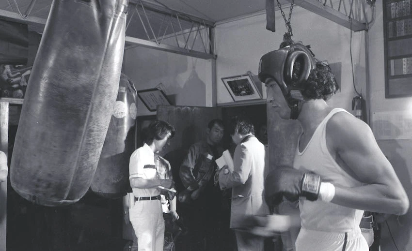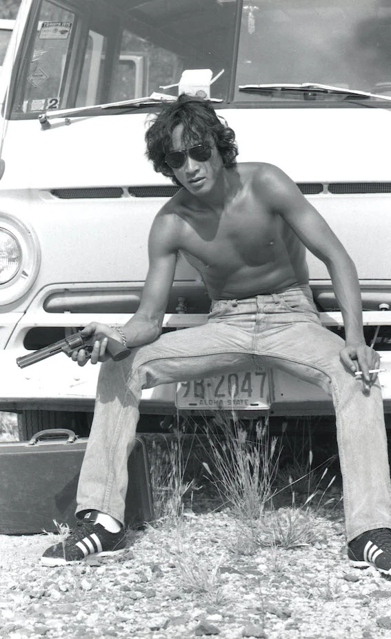 松田優作演じる一匹狼の反逆者・朝倉哲也が、勤める会社の乗っ取りを企て、体を鍛えて銃の腕を磨いていくさまを描いた「蘇える金狼」。メイキング写真は、撮影前にハワイで行った射撃訓練、ジャンプスーツを着た銃撃シーン撮影の休憩中、ボクシング練習、ヤクザとの対峙を捉えたもの。松田優作の色褪せぬ魅力がひしひしと伝わる。