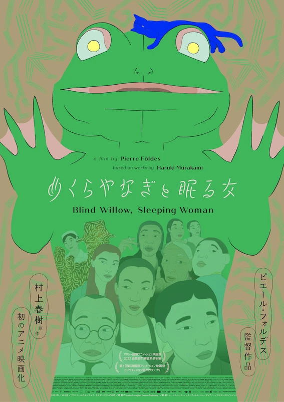 音楽家でアニメーション作家のピエール・フォルデスが、村上春樹の6つの短編小説『かえるくん、東京を救う』『バースデイ・ガール』『かいつぶり』『ねじまき鳥と火曜日の女たち』『UFOが釧路に降りる』『めくらやなぎと、眠る女』を翻案して制作した長編アニメーション映画「めくらやなぎと眠る女」が、7月26日(金)よりユーロスペースほかで全国公開。ビジュアルと予告編、アメリカ文学研究者で翻訳家の柴田元幸氏のコメントが到着した。