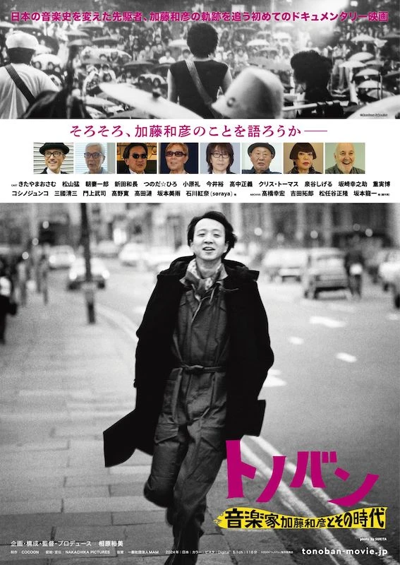 日本のロック・ポップス黎明期から時代を先取りし、今なお人々に影響を与える音楽家・加藤和彦の軌跡を追った「トノバン 音楽家 加藤和彦とその時代」が、5月31日(金)よりTOHOシネマズ シャンテほかで全国順次公開。本ビジュアルと予告編が到着した。