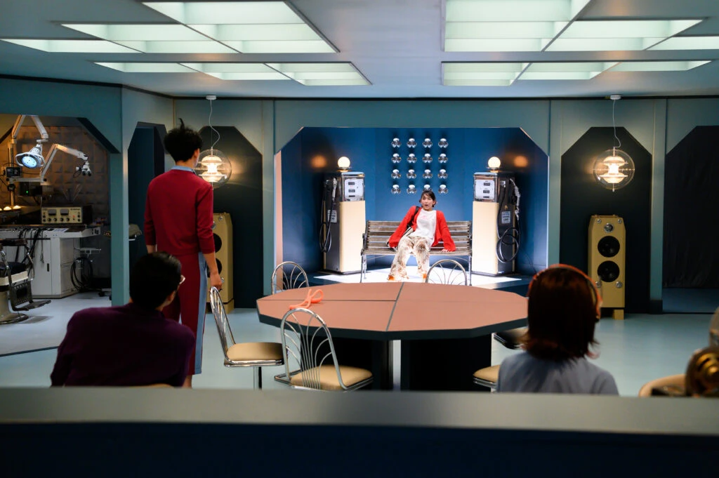 衣装やSFガジェットにもユーモアがあり、ハイテクだけど懐かしさや親しみが感じられるレトロフューチャーテイスト。タイムマシンはキックボード型で、年代を入力するパネル部分は「バック・トゥ・ザ・フューチャー」のデロリアン風。たくさんの機械類があるタイムパトロール基地内のセットも、よく見ると使われているパーツ類はところどころにレトロな家電を使っていたり、記憶消去装置“フォゲッター”も理容室の椅子や歯科医院のライトを改造していて、あえてアナログっぽさを残している。未来人を送り返す基地内の回廊も、目の錯覚を利用して果てしなく続くように見せている。永山瑛太演じる未来人・翔は、アンテナのような髪型に、マニキュアとペディキュアもしていたりと、そのファッションも未来の流行を活かした設定。画面の隅々までこだわっており、見どころが満載だ。こちらの内容は、Blu-ray BOXとDVD BOXに収録されている映像特典のメイキング集でも触れているので、ぜひ堪能していただきたい。