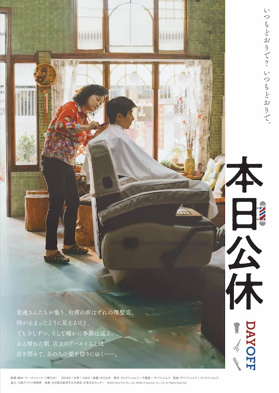 台湾の町外れの理髪店。ある晴れた朝、店主のアールイは店を閉め、あの人の髪を切りに行く──。第18回大阪アジアン映画祭で観客賞と薬師真珠賞(俳優賞)を受賞した「本日公休」が、9月20日(金)より新宿武蔵野館、シネスイッチ銀座ほか全国で順次公開。ポスタービジュアルと予告編が到着した。