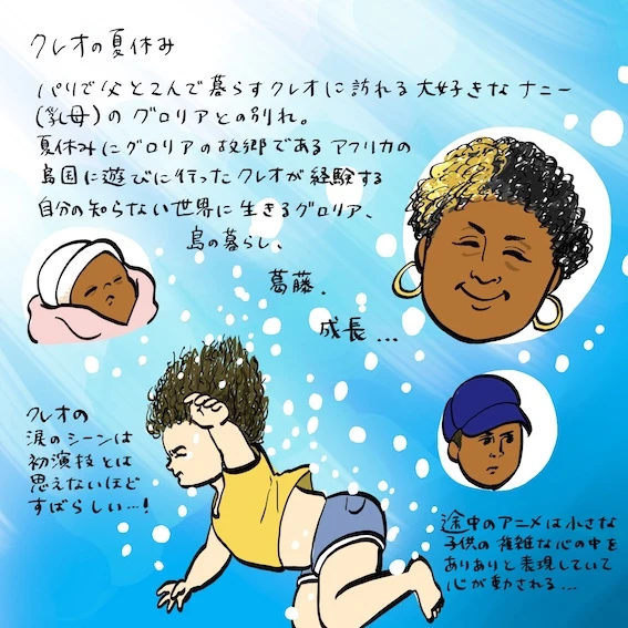 大好きな乳母に会うためにパリからアフリカの島国へ旅立った少女クレオの物語を紡ぎ、2023年カンヌ国際映画祭批評家週間のオープニング作品に選出された「クレオの夏休み」が、7月12日(金)よりヒューマントラストシネマ有楽町、Bunkamuraル・シネマ 渋谷宮下ほか全国で公開される。クレオの心象を表すアニメーションシーンの映像、ならびに著名人のコメントと漫画&イラストが到着した。