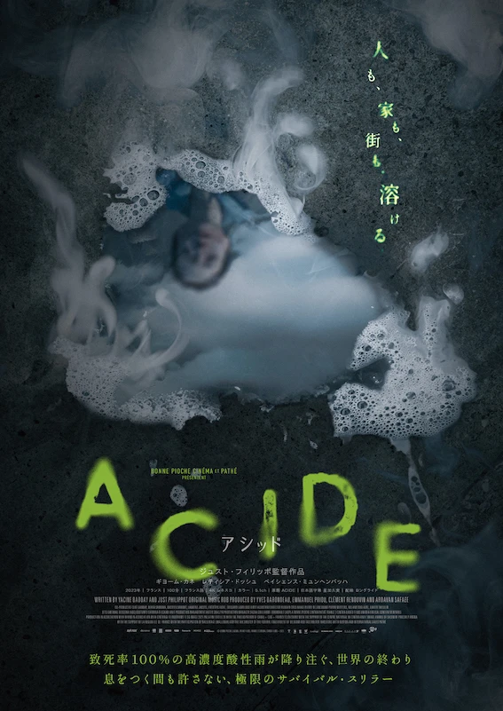 すべてを溶かす酸性雨が降り出した世界。パニックに陥った人々は、安全な地を求めて彷徨う──。2023年のカンヌ国際映画祭ミッドナイトスクリーニング部門やシッチェス・カタロニア国際映画祭に出品され、2024年セザール賞視覚効果賞にノミネートされた「ACIDE/アシッド」が、8月30日(金)よりTOHOシネマズ シャンテほか全国で公開。ポスタービジュアルと予告編が到着した。