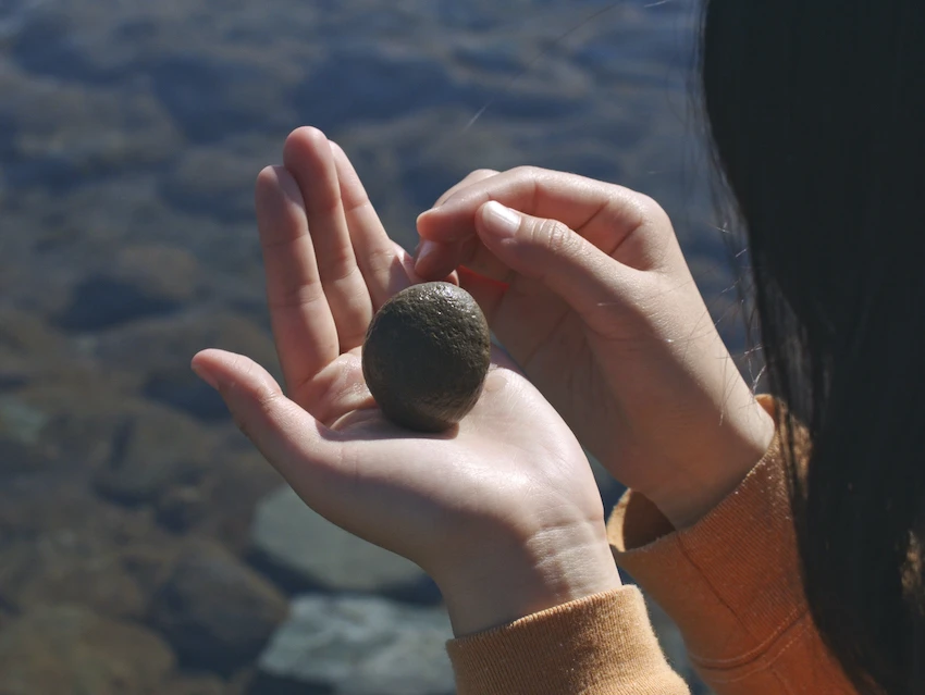 旅先での石拾い経験をもとにシナリオを書いた太田監督が、配給・公開の計画も立てぬまま、信頼する少人数のスタッフ・キャストと作り上げたのが本作。川で出会った二人がひと時を過ごす素朴な筋書きながら、心情のなびきや偶然性の豊かさを巧みに捉えていく。