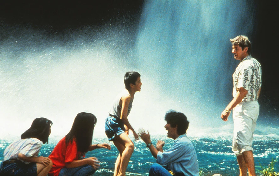 巨匠の映画では、黒澤明監督の「八月の狂詩曲」(91)がお目見え。長崎で暮らすお婆ちゃんと、4人の孫たちとのひと夏の触れ合いを中心に、原爆を体験したお婆ちゃんの心情を底辺に這わせ、「生きものの記録」(55)、「夢」(90)に連なる黒澤監督の反核の想いが映し出された作品だ。村瀬幸子扮するお婆ちゃんの甥役で、リチャード・ギアも出演。そのたどたどしくも誠実さが溢れる日本語のセリフも印象的だ。黒澤作品では他に、彼の遺作となった「まあだだよ」(93)も登場。こちらは作家・随筆家の内田百閒と彼の門下生たちとの触れ合いを描いた、人間讃歌になっている。門下生のひとりを演じた所ジョージが、軽さと柔らかさを感じさせて好演。デビュー作「姿三四郎」(43)や「赤ひげ」(65)など、黒澤監督には師弟関係を描いた作品が多いが、その集大成とも言える一篇だ。