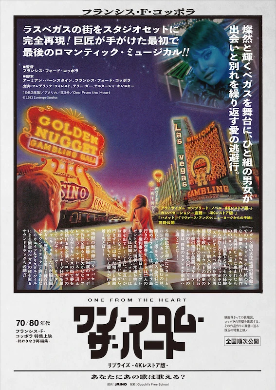 ラインナップは「ワン・フロム・ザ・ハート」(1982)、「アウトサイダー」(1983/今回上映されるのは2005年発表のコンプリート・ノベル版)、「カンバセーション…盗聴…」(1974)の各4Kレストア版。そしてコッポラが製作総指揮、ヴィム・ヴェンダースが監督を務めた「ハメット」(1982)。さらに「ハメット」制作時の両者の確執を収めたヴェンダース監督作「リヴァース・アングル:ニューヨークからの手紙」(1982)が、「ハメット」と併映される。