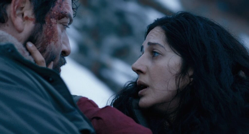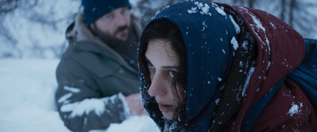 「ホワイト・サバイバル 越境者たち」もまた雪景色の中で展開するサスペンスだ。欧州アルプス西端の山岳地帯、積雪と寒風の中、軽装で山頂踏破を試みる男女の行動は見ているだけで震えが止まらなくなる。主人公・サミュエル(ドゥニ・メノーシェ)は、自身が運転する自動車事故で妻を失っている。その喪失感と自責の念から立ち直れず、弟の心配をよそに仕事を休職して、妻との楽しい思い出が残る山小屋に籠り、過去の記憶に溺れていた。そんなある日、誰もいないはずの山小屋で女性の侵入者チェレー(ザール・アミール・エブラヒミ)を発見する。チェレーはアフガニスタン難民の元教師で、同国のタリバン政権の迫害を逃れフランスを目指していた。
