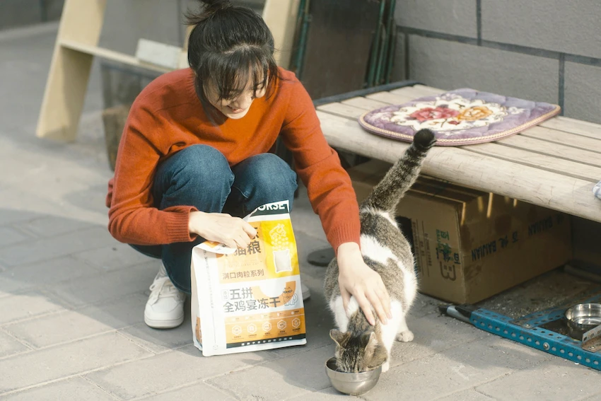 場面写真は、餌をあげようとしてもなかなか猫が近寄らないウェンと、すぐに猫が寄ってくる依頼人ジンスイ(チー・シー)を捉えたもの。こちらも微笑ましい。