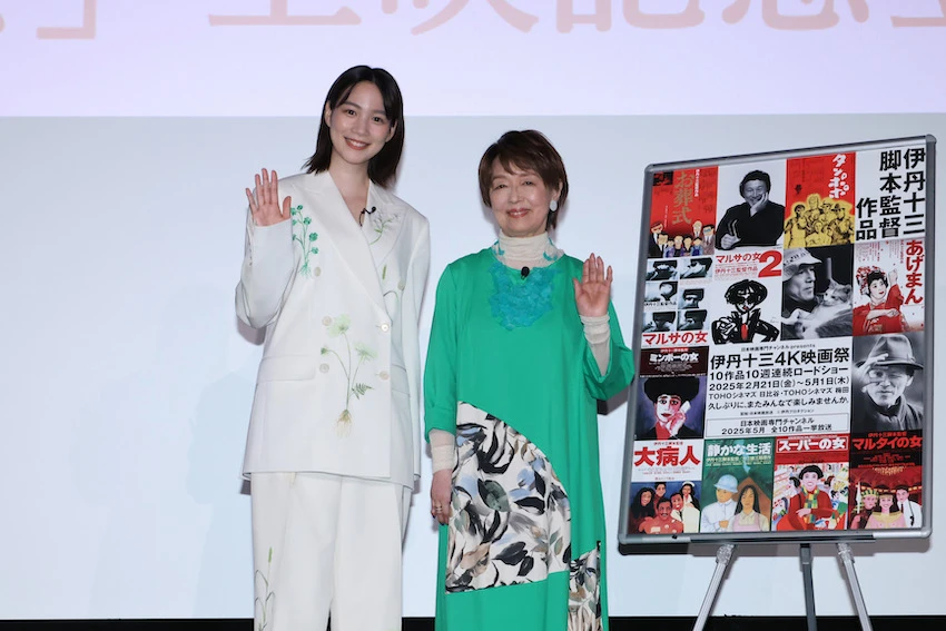 伊丹十三監督の全10作品を、4Kデジタルリマスター版で1週間ずつ上映する〈日本映画専門チャンネルpresents 伊丹十三4K映画祭〉が、2月21日(金)から5月1日(木)までTOHOシネマズ 日比谷・梅田で開催中だ。4月18日(金)にはTOHOシネマズ日比谷で「スーパーの女」上映イベントが行われ、主演した宮本信子と、俳優・アーティスト・映画監督として活躍するのんが登壇した。