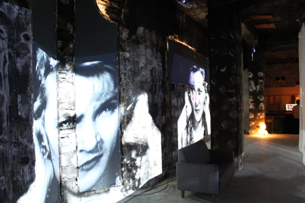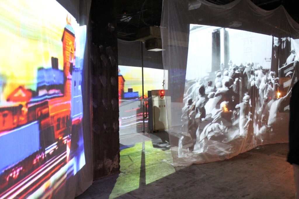そのような観点からは、会場で流れる映像と音が一意的に定まっているわけではなく、Isadoraという舞台芸術向けの映像制御ソフトウェアを使って、ある程度の偶然性も取り入れながら無数の組み合わせが作り出されていることにも留意すべきだろう(このソフトウェアによる制御の過程それ自体も、会場の片隅にマラルメの『骰子一擲』とともに展示されている)。それによって、完成作としてパッケージ化される寸前の、永遠に生成途上の段階にとどまる、ありえたかもしれない「イメージの本」が、理論的には来訪者ひとりひとりの行程ごとに、無限に生まれていくことになるのである。