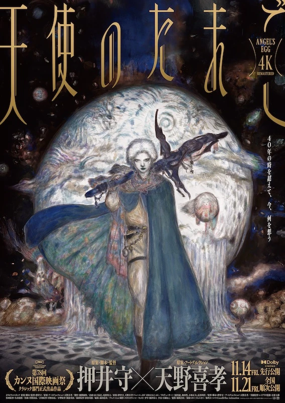 若き日の押井守が原案・脚本・監督、天野喜孝が原案・アートディレクションを担い、たまごを守る少女と鳥を探す少年を軸に幻想的世界を紡いだOVA「天使のたまご」(1985)が、4Kリマスター版で復活。11月14日(金)よりドルビーシネマで先行上映され、11月21日(金)より全国で順次公開される。“40周年記念ビジュアル”ならびにそれを描き下ろした背景を天野が語るインタビュー映像が到着した。